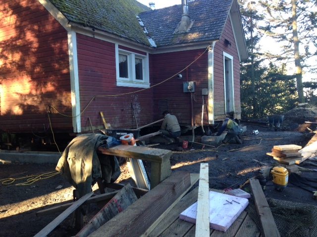 The foundation first had to be dug out, a tough job, although this shows the “easier” work on the outer edges of the building, in comparison to what had to be done underneath the building, around the support posts.